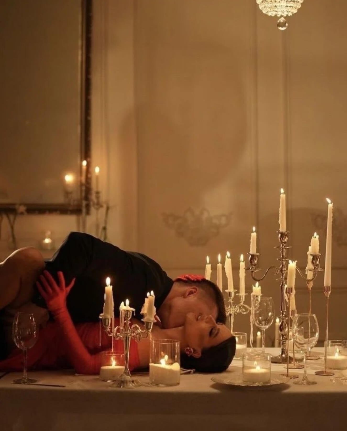 Immagine evocativa di due amanti che incarnano il desiderio viscerale e feroce: corpi che si consumano, anime che si divorano, in una fusione cannibale di tempo e passione.